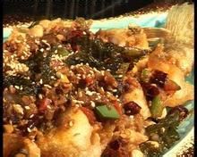 (750克),加入葱段、姜丝、蒜片、精盐、味精调好味;