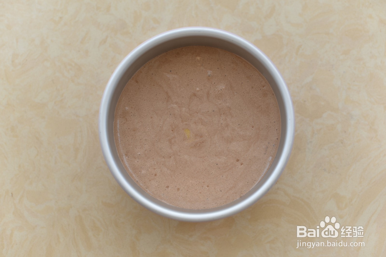 2、蛋黄里加入15克白砂糖搅拌均匀,加入牛奶、玉米油、低筋粉、可可粉;