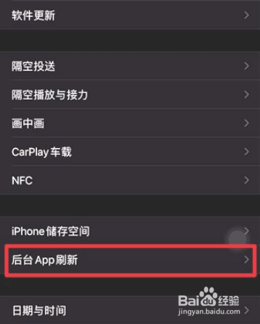 4、在后台App刷新设置界面,点击这里后台App刷新选项。