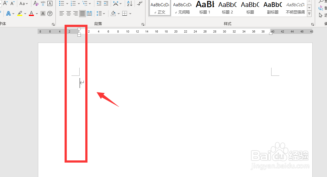 1、打开word软件,在界面中点击鼠标左键,选择一个段落的开头。