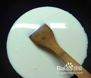 4、一定注意要小火熬制,最好用不粘锅,熬制五分钟左右基本开始成糊状了,这时一定控制好火候和时间千万不要熬过火,不然可就糊锅了而且口感也不好。