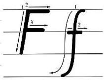 F的大写占四线三格的第一、二、三根线和第一、二格。