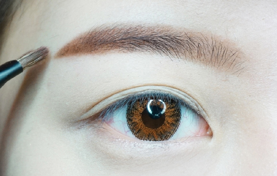 第三步:第二深色填充眉毛前半部分,眉头轻轻带过就好,用螺旋刷晕染开眉头。