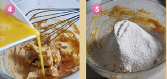 3、筛入低粉和泡打粉,用橡皮刮刀轻轻搅拌无白粉
