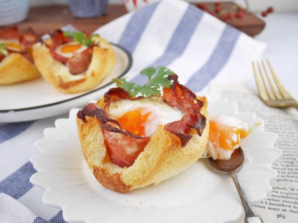 5、打一只鸡蛋在培根圈里,撒适量黑胡椒碎