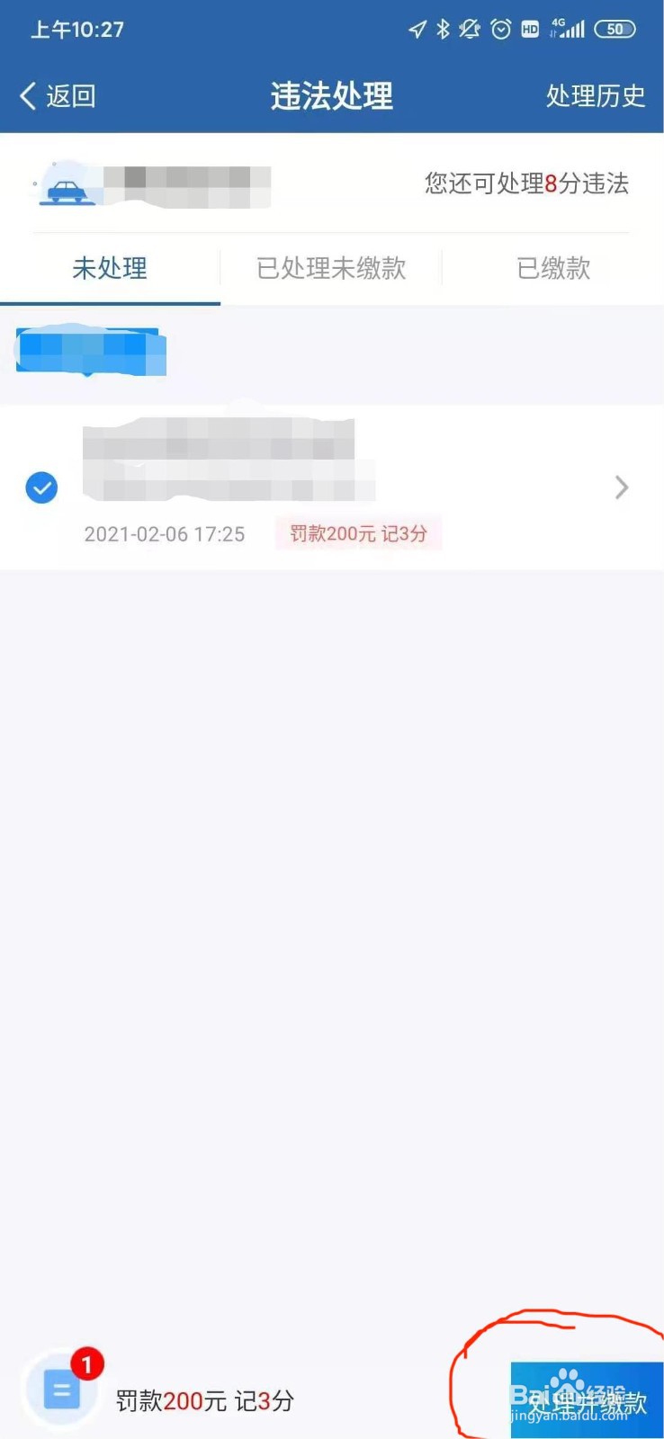 2、注册完成后,绑定驾驶证和机动车,就可以看见未处理的违章信息