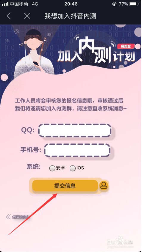 8、然后输入要求的信息,等待抖音审核通过之后就可以加入,如图所示。