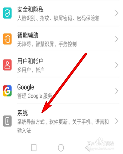 1、1、手机弹不出输入法,我们进入到设置界面,在底部选择系统,打开系统界面。