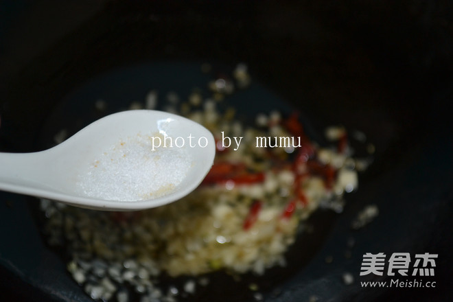 8、加盐,喜欢吃辣的还可以放一些辣椒酱,出锅后倒入苜蓿菜豆腐里面拌匀即可