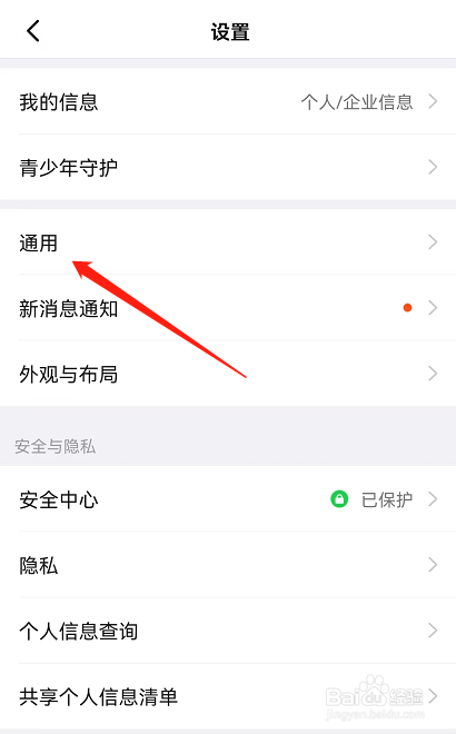 1、打开钉钉APP设置界面,点击列表中【通用】。