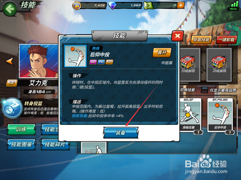5、这时就会弹出该技能对话框,上面会显示有关此技能的描述,接着点击【装备】按键。