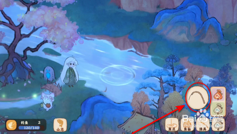 1、第一步,打开桃源深处有人家,点击鱼塘【鱼竿】按钮,