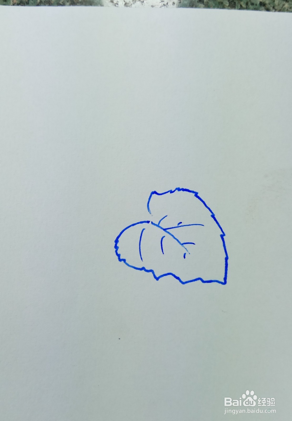 1、在白纸上用线条和曲线画出南瓜苗的一个漂亮的叶子。