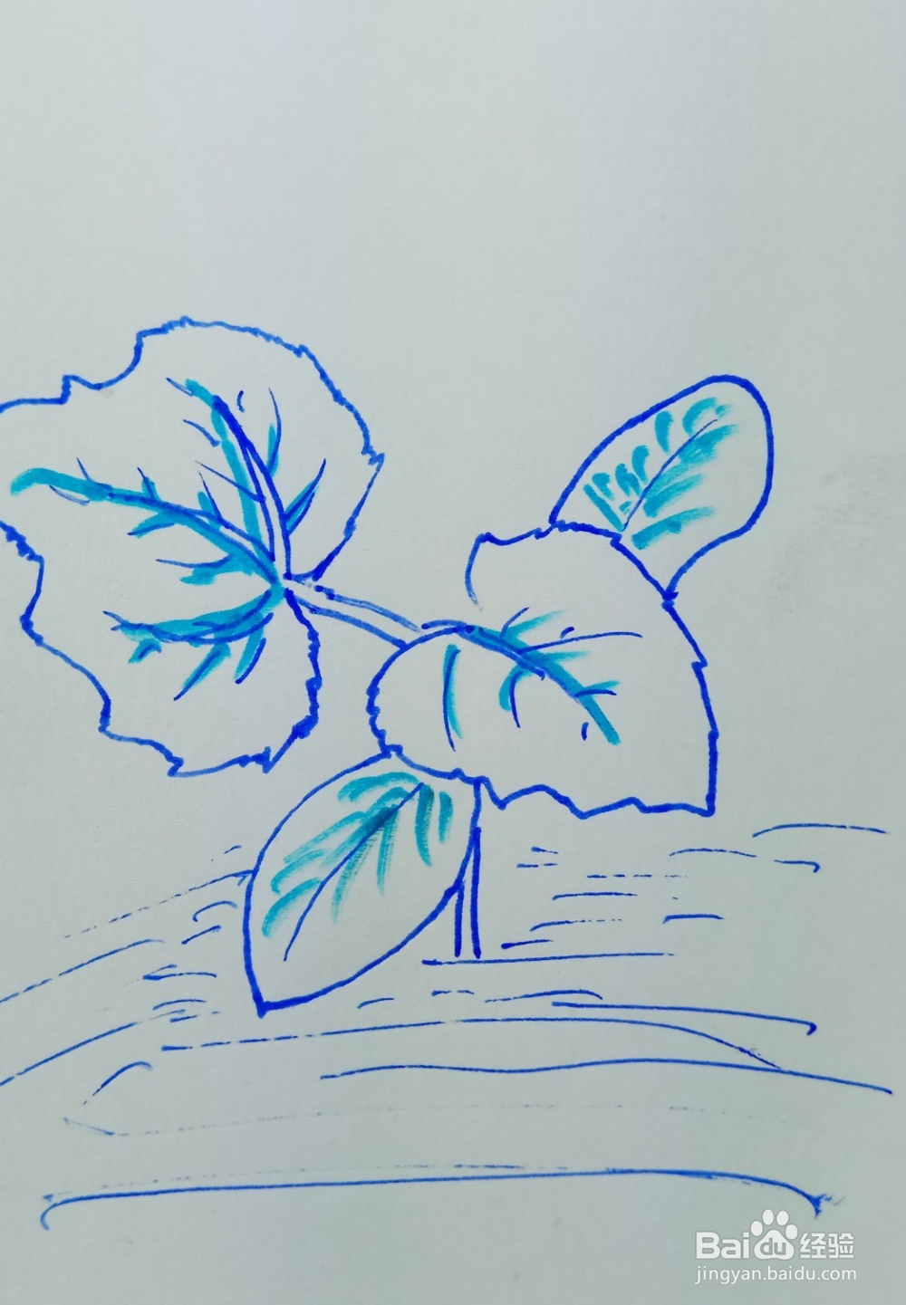 5、用水彩笔涂出叶脉部分,这样更加漂亮一些。