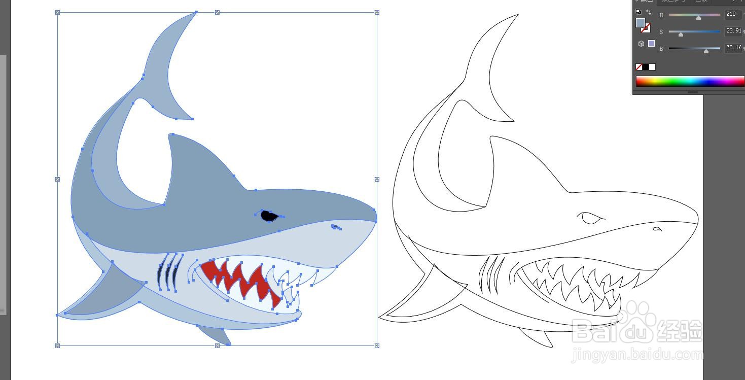 1、首先绘制出鲨鱼的基本外形,然后复制一个出来