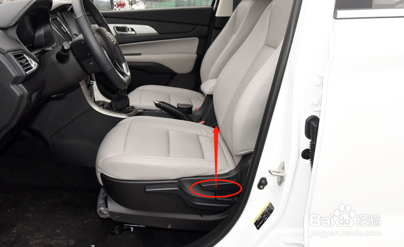 5、副驾驶的靠背角度同样需要拉起内侧把手调整。