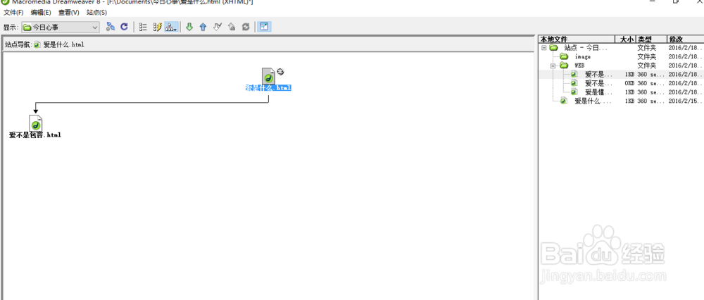 1、 Dreamweaver中如何建立、修改、删除、保存站点地图,在图下中我们对这个“今日心事”进行站点地图的建立、修改、删除、保存