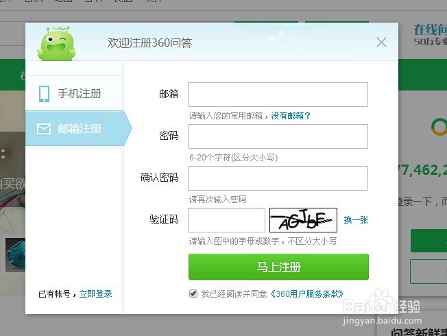 2、注册账号输入邮箱,密码,验证码,点击马上注册