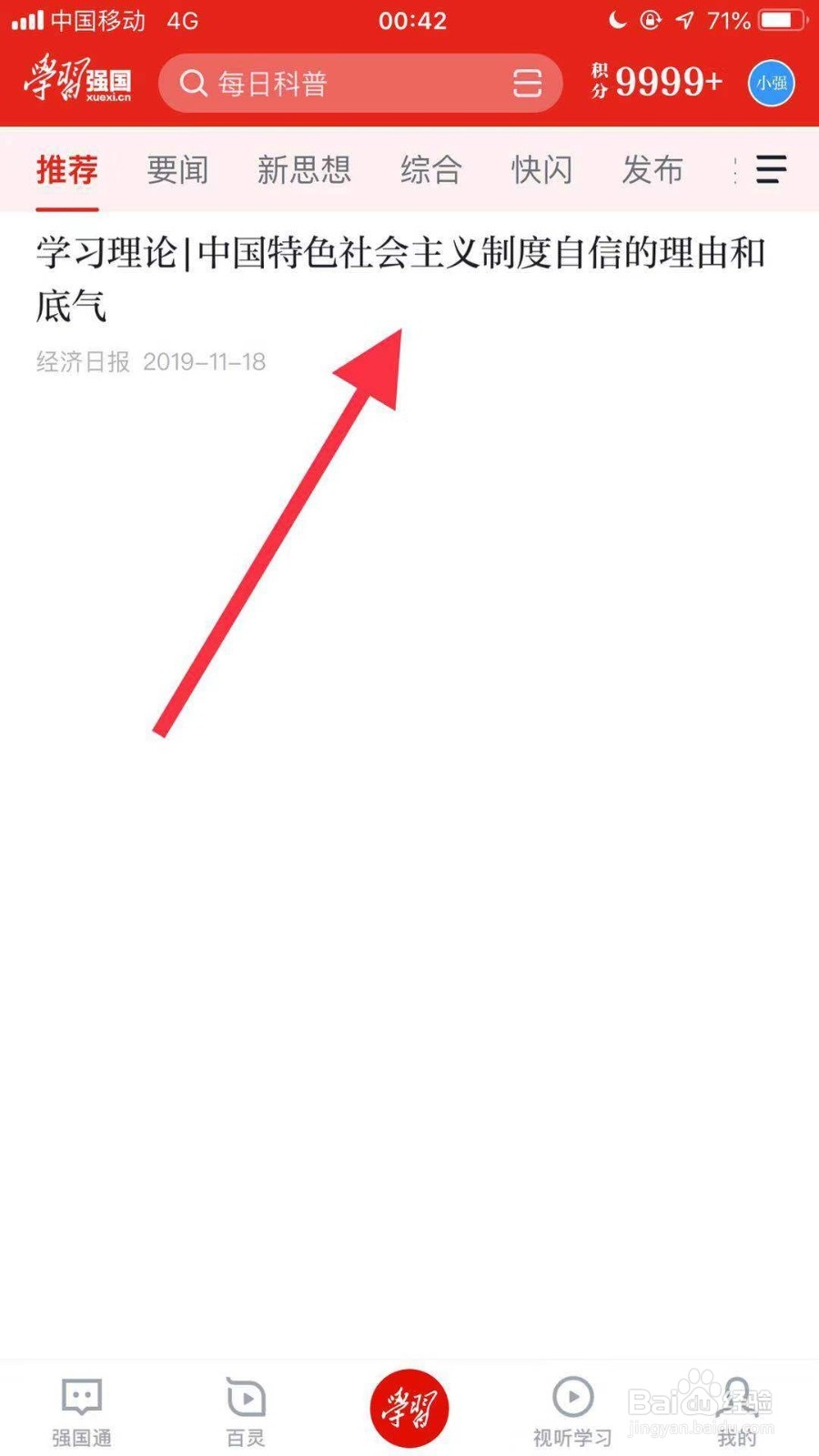 5、这样操作完成,我们就获得了学习强国的收藏积分了。