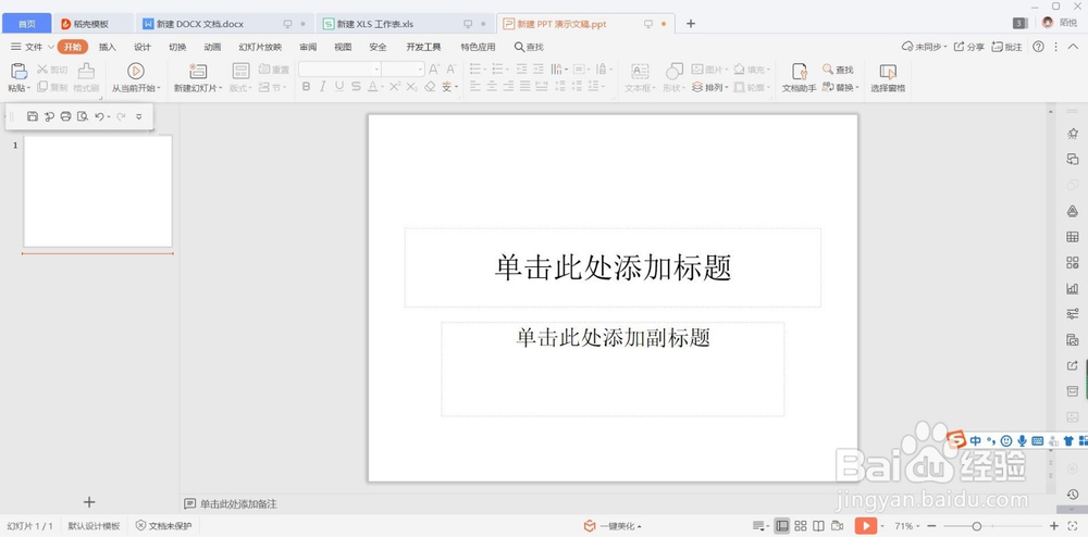 1、在电脑桌面或电脑磁盘里面新建一张PPT。