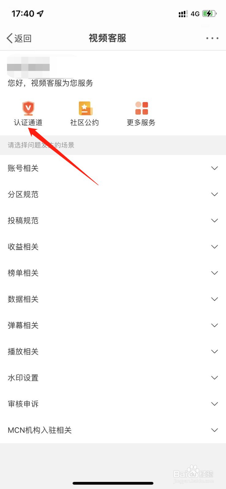 3、进入客服中心后,点击认证通道,进入认证界面。