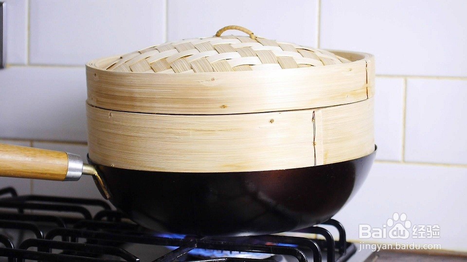 3、将锅里倒入适量冷水,放上蒸笼,蒸笼底部放入蒸笼布。