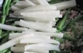 4、刨去藕的皮,也把藕切成和豇豆一样的长度。