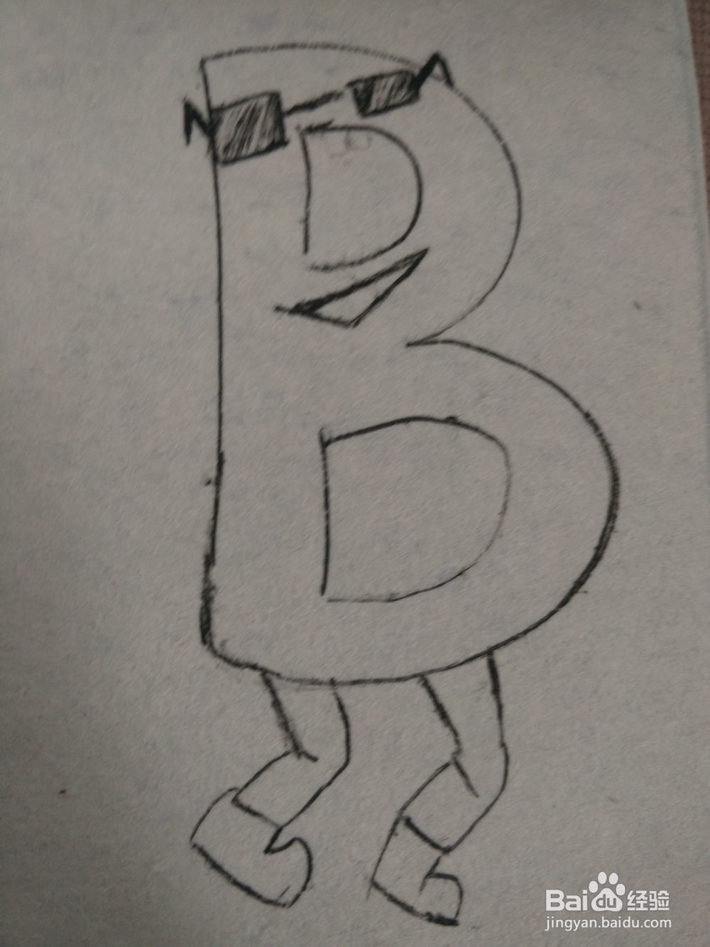 4、第四步画出字母“B”的眼睛和嘴巴。
