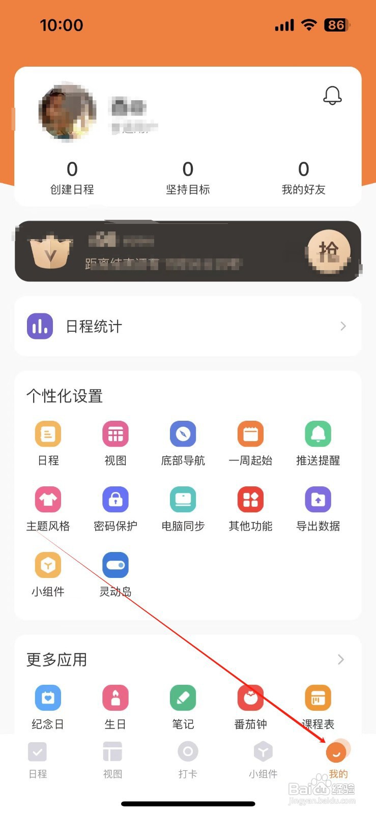 2、进入“视图”界面,我们通过点击“我的”选项来实现。