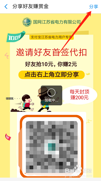 7、点击右上角的分享按钮,通过不同方式进行分享,好罩彩友通过你分享的链接签代扣,你就可以得到2元赏金。