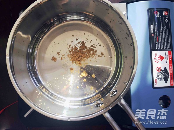 1、将黄金幼砂糖倒入锅中,稍微加热一下。