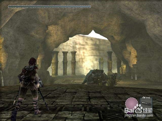 1、巨像牛头怪,跳到巨像小腿肚子上,刺弱点,巨像下跪。从小腿肚子跳到大腿护甲上,再从大腿护甲一口气爬到腰部小平台上。爬到头顶弱点,等巨像不动时,按一下攻击蓄力,观察右下角耐力槽,一个光圈从中心向外扩散,光圈越大刺入力量也越大,再按一下攻击刺入。