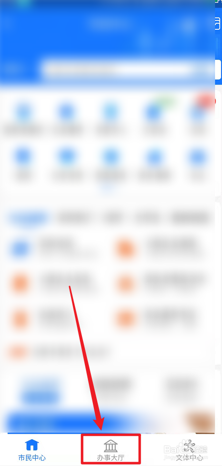 2、进入市民中心后,点击最下面的办事大厅