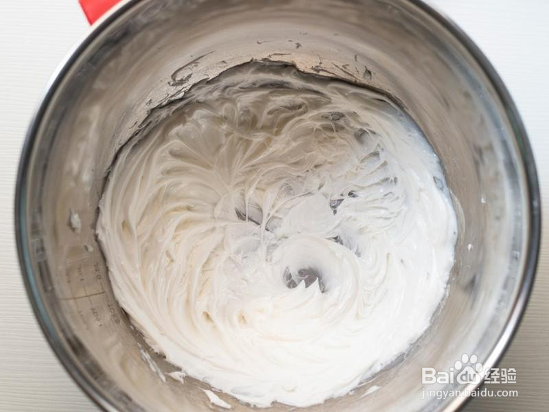 7、加入蛋黄和棉白糖时都不用打发,搅拌均匀就好,此步骤用刮刀也是可以的,都没关系。