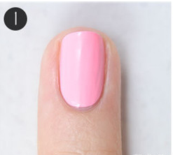 1、给指甲涂上粉红色指甲油;