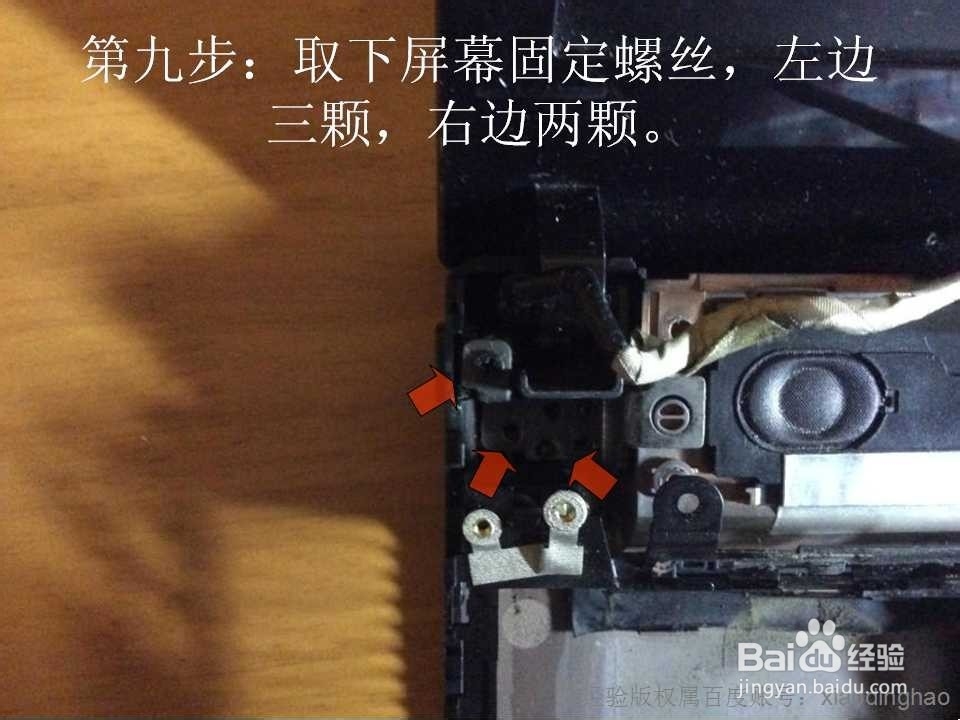 15、第九步:取下屏幕固定螺丝,左边三颗,右边两颗。