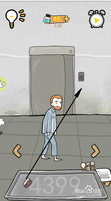 2、再转到第三幅画,点击按钮,之后用撬棍打破玻璃