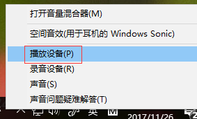 1、右键点击右下角声音图标,选择【播放设备】