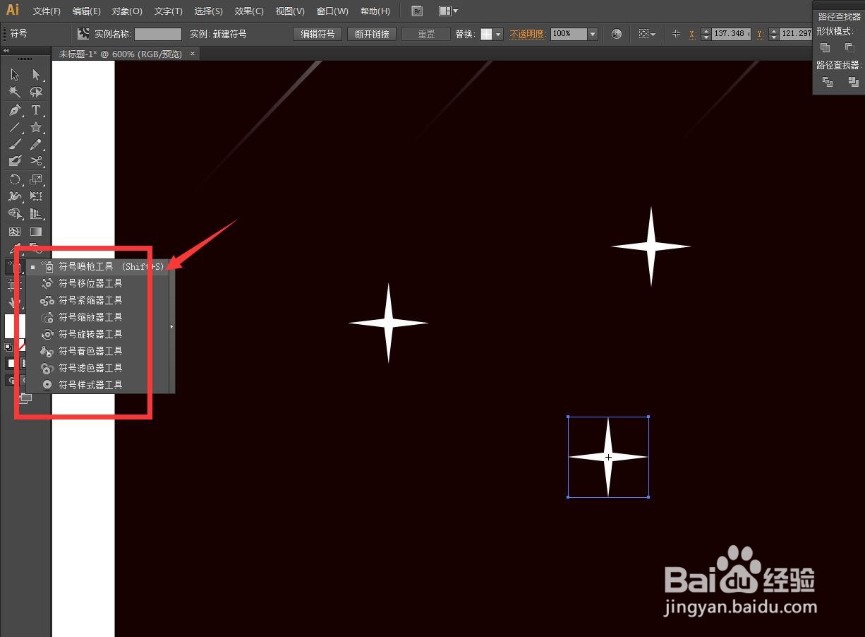 5、直接在符号面板中,拖出来,就可以使用图形了。
