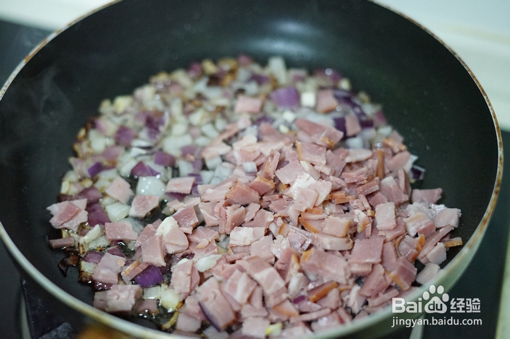 5、把培根丁炒熟