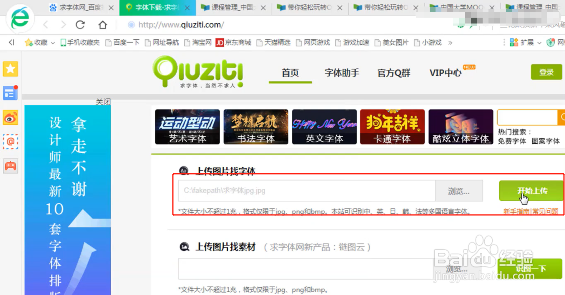 2、然后在百度上搜索求字体网,打开字体网的官网