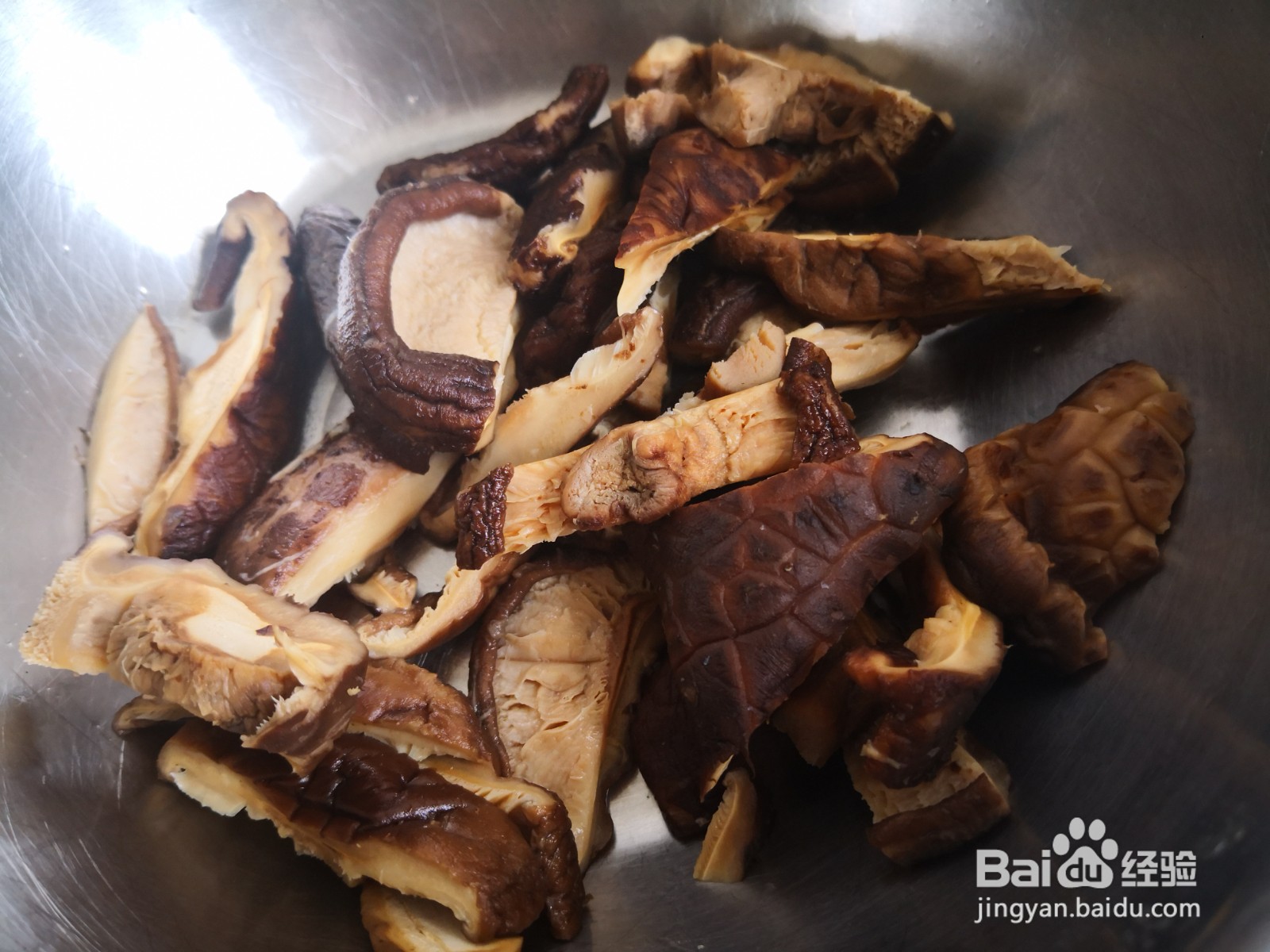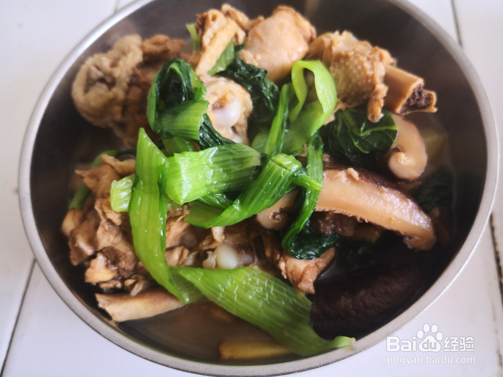 2、香菇事先泡开切片,土豆去皮切成滚刀片,青菜焯水后切段备用