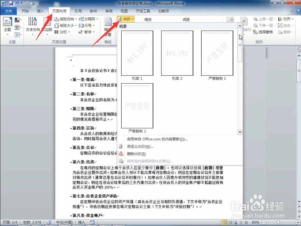 1、文档的水印有很多种,比如“严禁复制”,“禁止拷贝”、“机密”等等,我们也可以用Word来添加更加个性化的水印;
