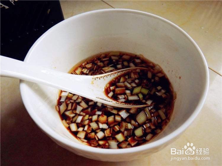6、将姜末、蒜末、生抽等调味料放入碗中,搅拌均匀,做好调味料。