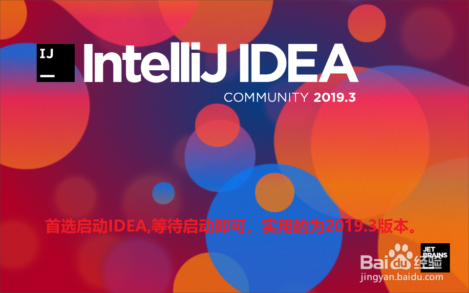 1、首选启动IDEA,等待启动即可,实用的为2019.3版本。