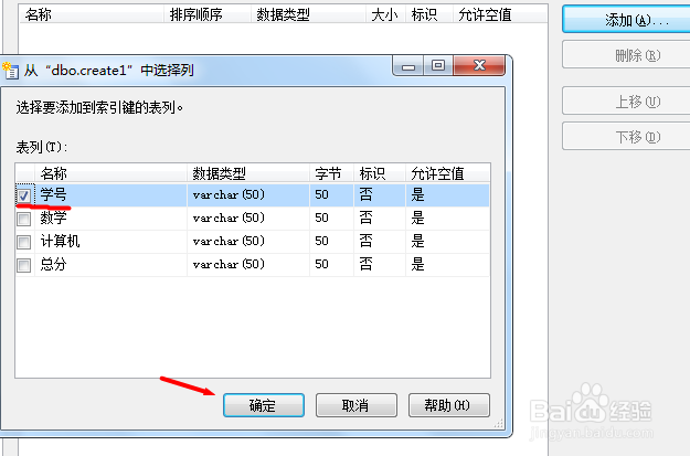还有添加列,不添加就建立不了的。我们就添加《学号》这一列吧。选择确定