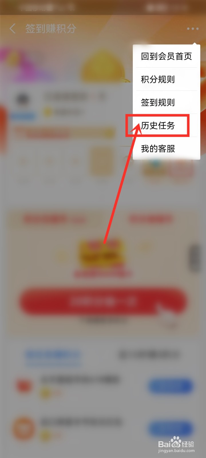 5、进入菜单,点击【历史任务】,即可查看积分历史任务。