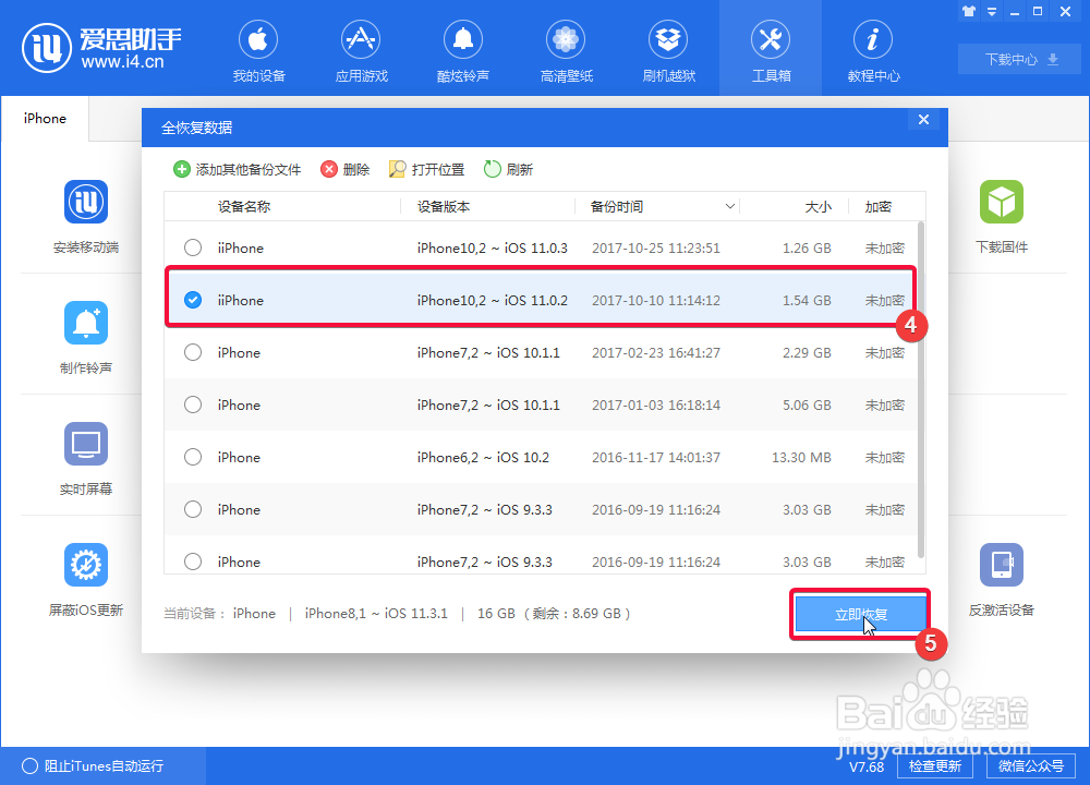 1、首先电脑下载安装iTunes 并使用数据线进行链接验证(恢复模式进入方法:同时按住Home+关机键,等屏幕熄灭之后再亮起,接着松开关机键,继续按住Home键10秒)