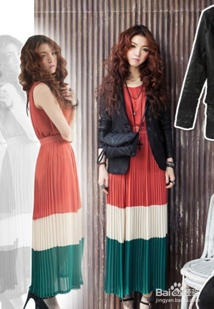雪纺的长裙依然是本季流行的单品,百褶的款式更加的充满活力和女人的俏皮感,大胆的撞色活力无限,早春西装式的休闲外套混搭,独立个性,搭配一双高跟的单鞋,性感大气。
