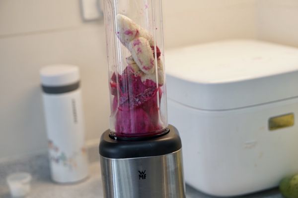 3、香蕉、火龙果,搅拌机,搅拌细腻。